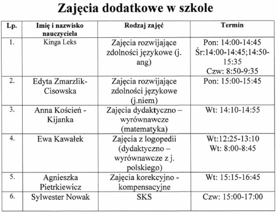 - ZAJĘCIA DODATKOWE